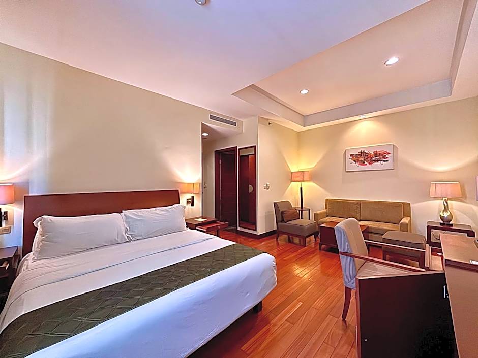 Featuring free toiletries and bathrobes, this suite includes a private bathroom with a bath, a shower and a bidet. The spacious suite features air conditioning, a mini-bar, a seating area, a wardrobe, as well as a flat-screen TV with cable channels. The unit has 1 bed.